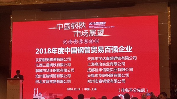 2018年12月14-16日2019中國鋼鐵市場展望暨“我的鋼鐵”年會在上??鐕少彆怪行穆≈卣匍_。我公司收到主辦方熱情邀請并參會,憑借著優(yōu)質(zhì)的產(chǎn)品和服務(wù)贏得了中國貿(mào)易百強評選委員會的青睞,榮獲2018年度中國鋼管貿(mào)易百強企業(yè)。來自全國各地的鋼鐵生產(chǎn)企業(yè)、貿(mào)易商、終端采購企業(yè)代表、鋼鐵電商等鋼鐵行業(yè)從業(yè)人員共4000余人出席了論壇。我公司領(lǐng)導(dǎo)層高度重視這次與廣大友商交流的機會,特派各部門主管及經(jīng)理參會并學(xué)習(xí)。